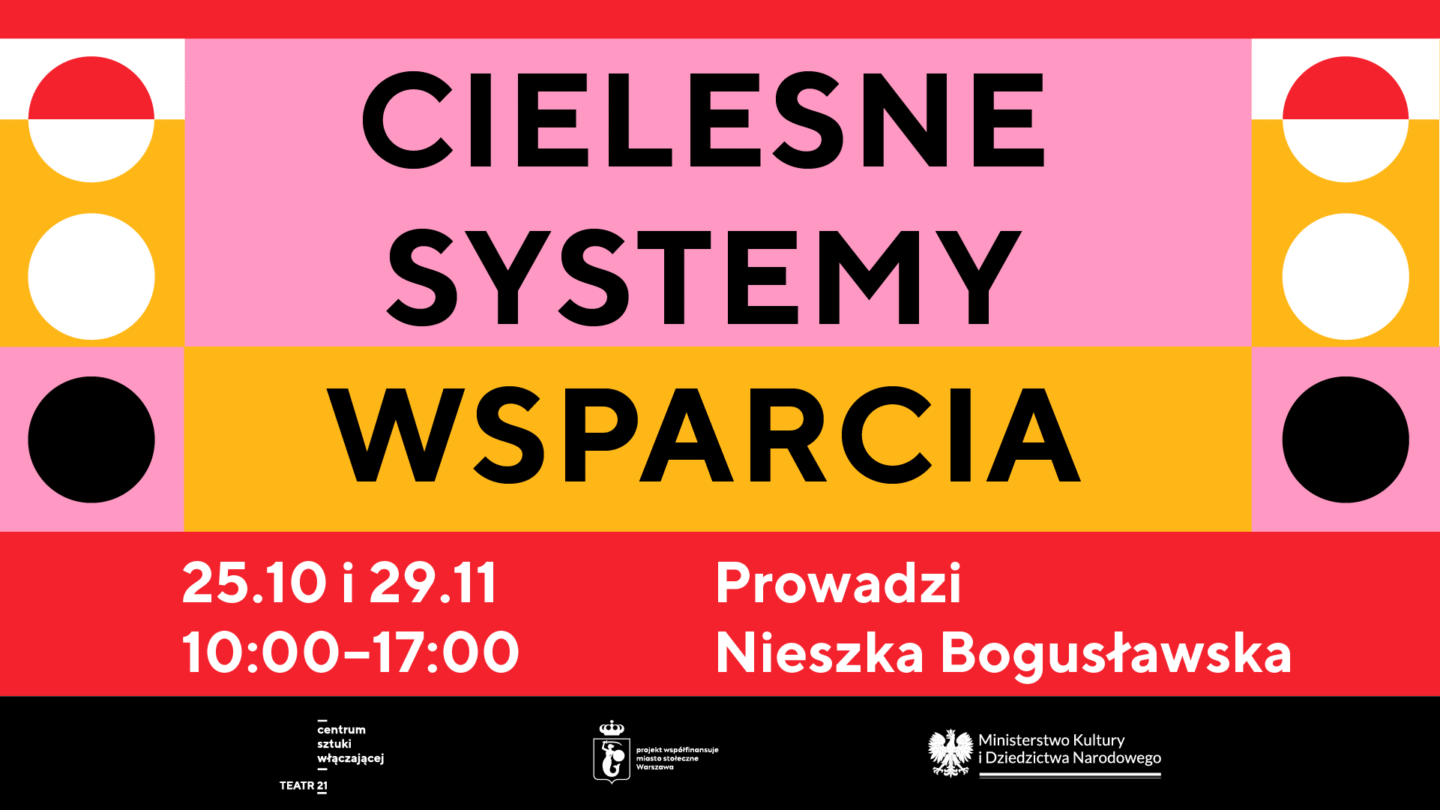 Projekt Cielesne Systemy Wsparcia w CSzW/ Teatr 21 finansowany jest przez Miasto Stołeczne Warszawa oraz Ministerstwo Kultury i Dziedzictwa Narodowego